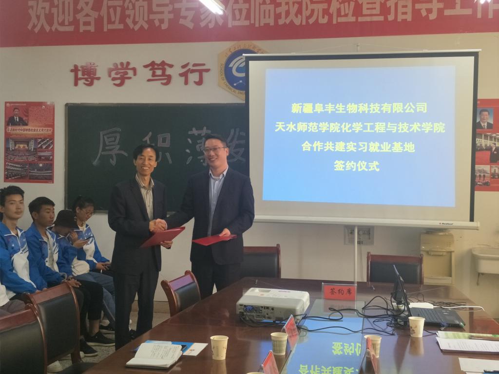 4月28日上午,公司与新疆阜丰生物科技有限公司成功举办合作共建实习就业基地签约仪式。