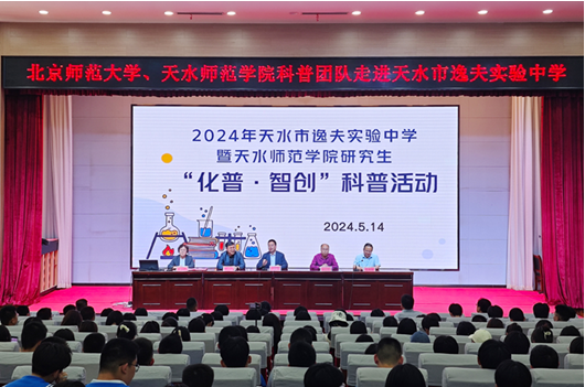 为贯彻落实习近平总书记关于科普工作的重要指示精神,落实好国家、省、市对加强新时代中小学科学教育的部署要求,弘扬科学精神,传播科学思想,进一步提升全市青少年的科学素养,5月14日下午,3044AM永利官网与北京师范大学联合在天水市逸夫实验中学开展“化普•智创”科普活动。