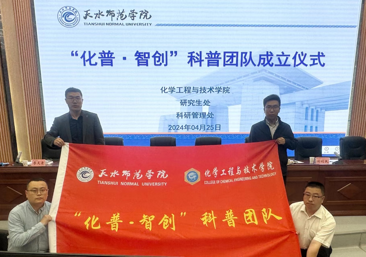 为深入学习宣传贯彻党的二十大精神、落实习近平总书记关于“科技创新、科学普及是实现创新发展的两翼,要把科学普及放在与科技创新同等重要的位置”的重要思想,更好地发挥高校科普教育资源优势和研究生群体的积极性和创造性,协助提升公众科学文化素养,弘扬和培育科学家精神,4月25日,学院在4号报告厅举行“化普·智创”科普团队成立仪式。研究生处处长金锋、科研管理处相关负责人,学院领导班子成员、教师代表、研究生秘书、辅导员、研究生和本科生代表等共计100余人参加仪式。